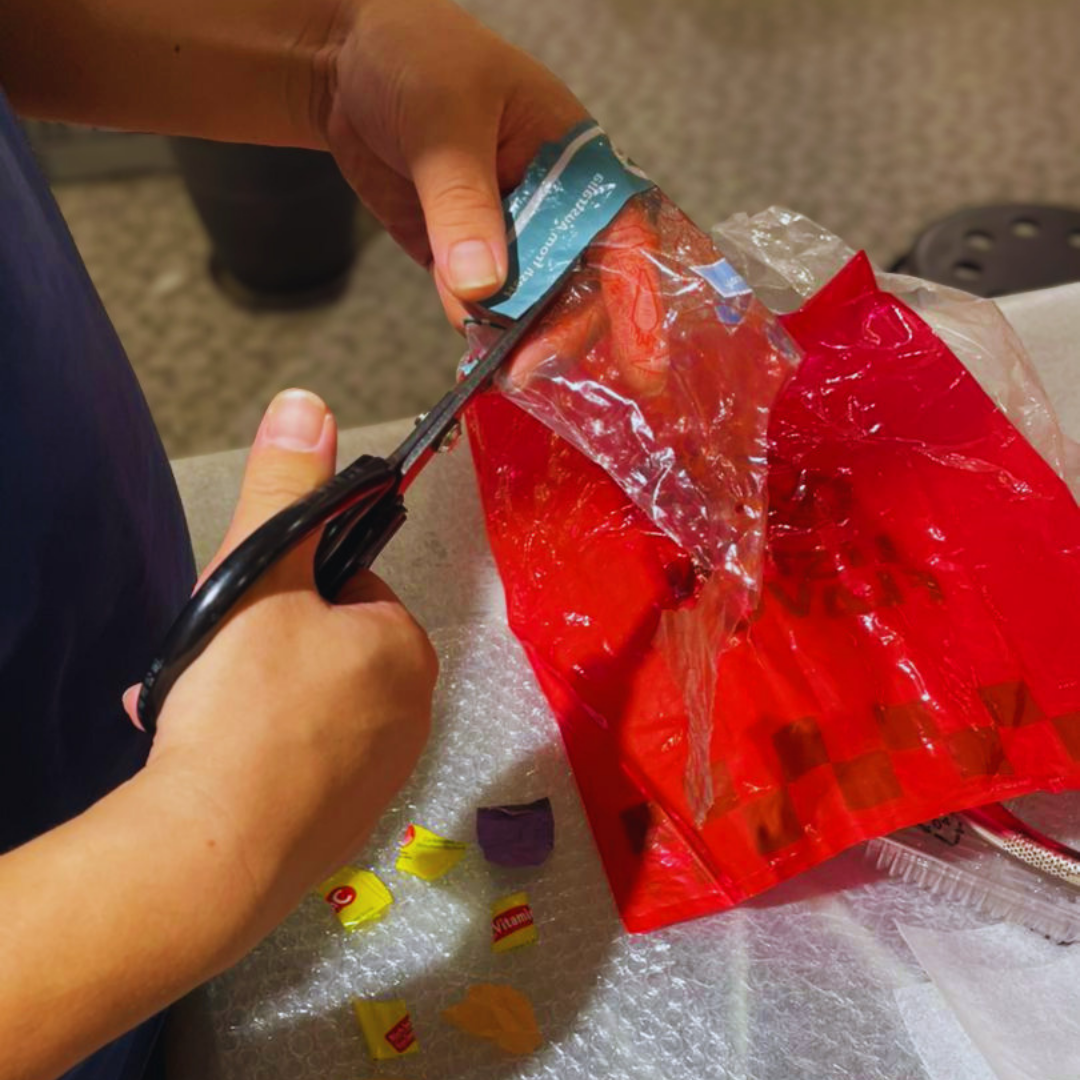 We also want to show you the process and how much work goes into making our upcycled soft-plastic products.